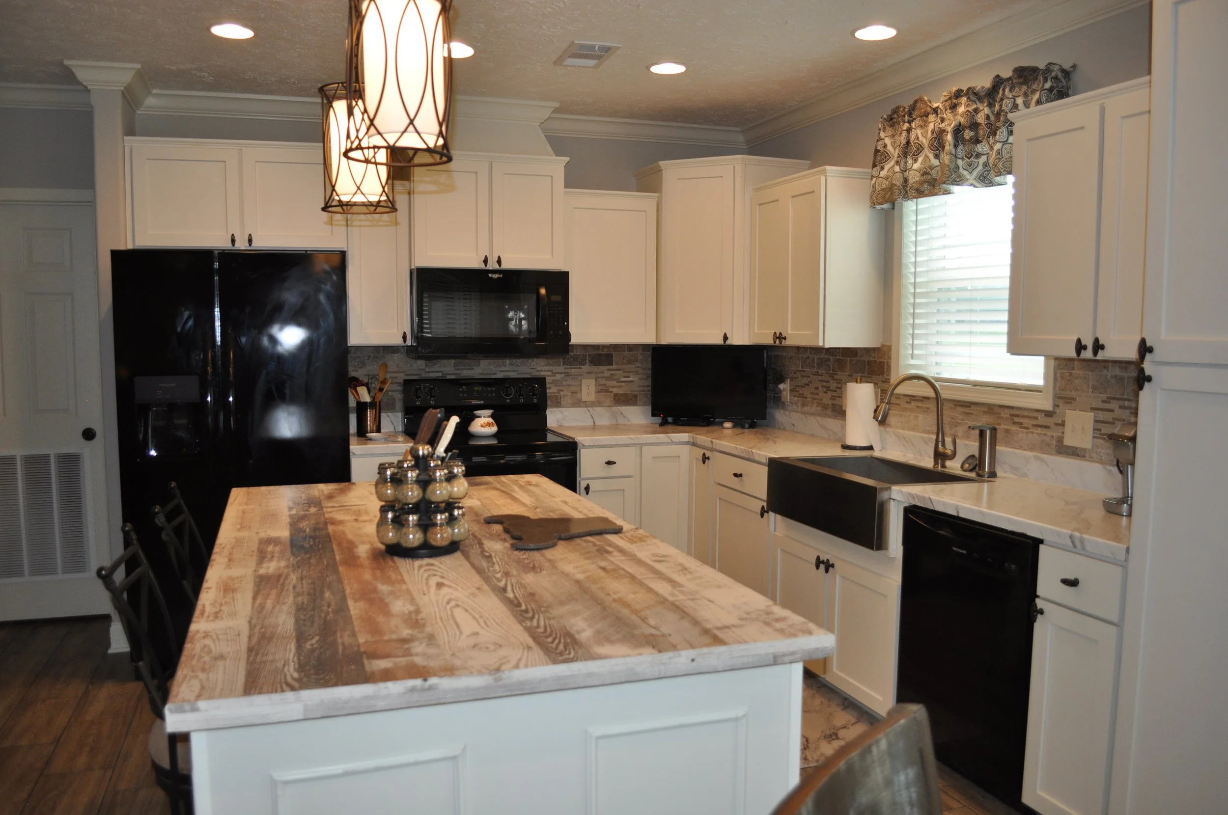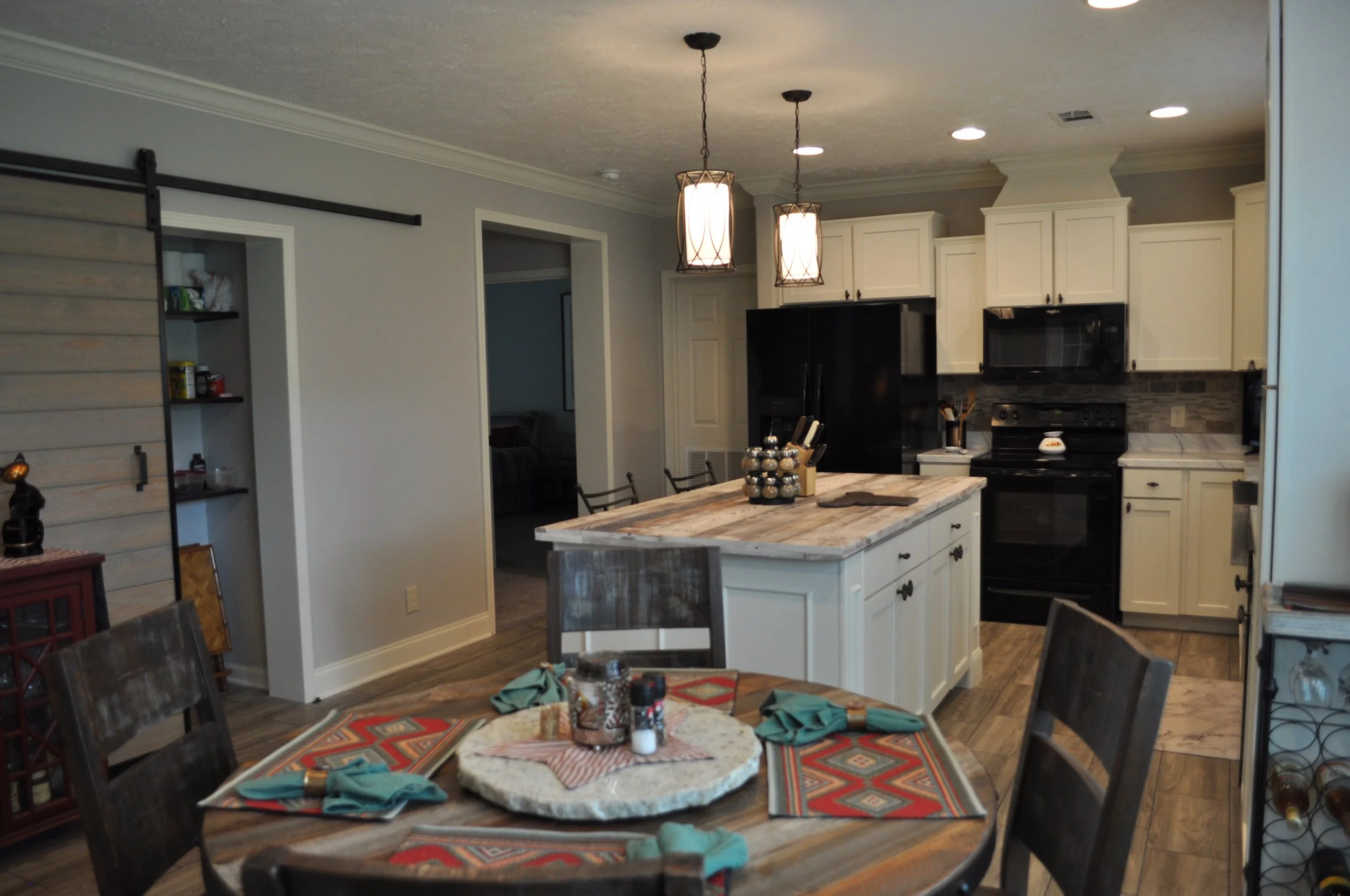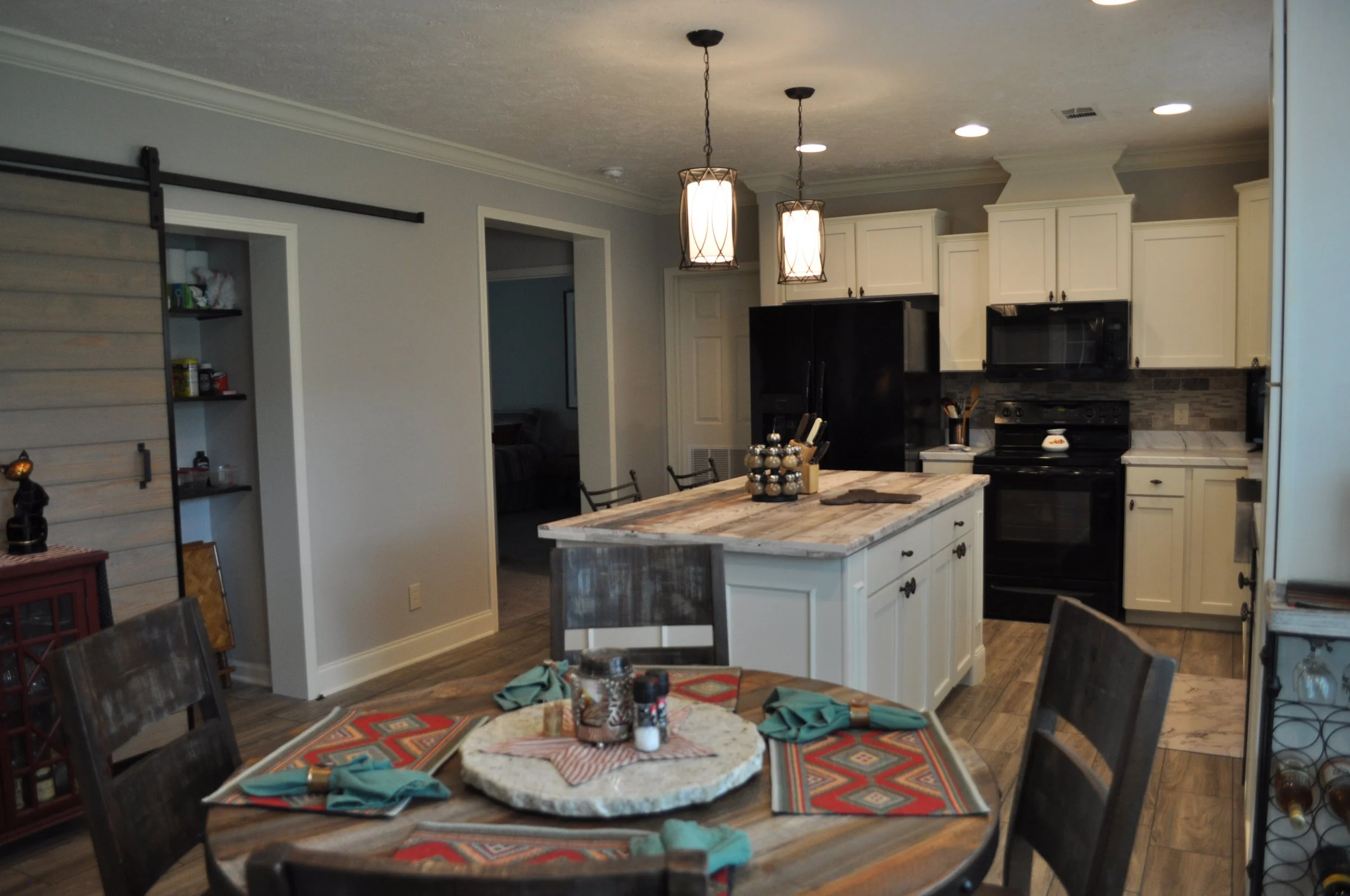 The home offers lots of modern convivences. Such as beautiful living room with faux beams and electric rectangular fireplace, lots of windows for natural lighting, a cozy dining area, a modern kitchen with a spacious center island, stainless farm sink, tile backsplash, granite style counter tops, a separate pantry hidden behind a sliding farm door, spacious mud/utility room, and a hot water circulation system throughout the entire home.
