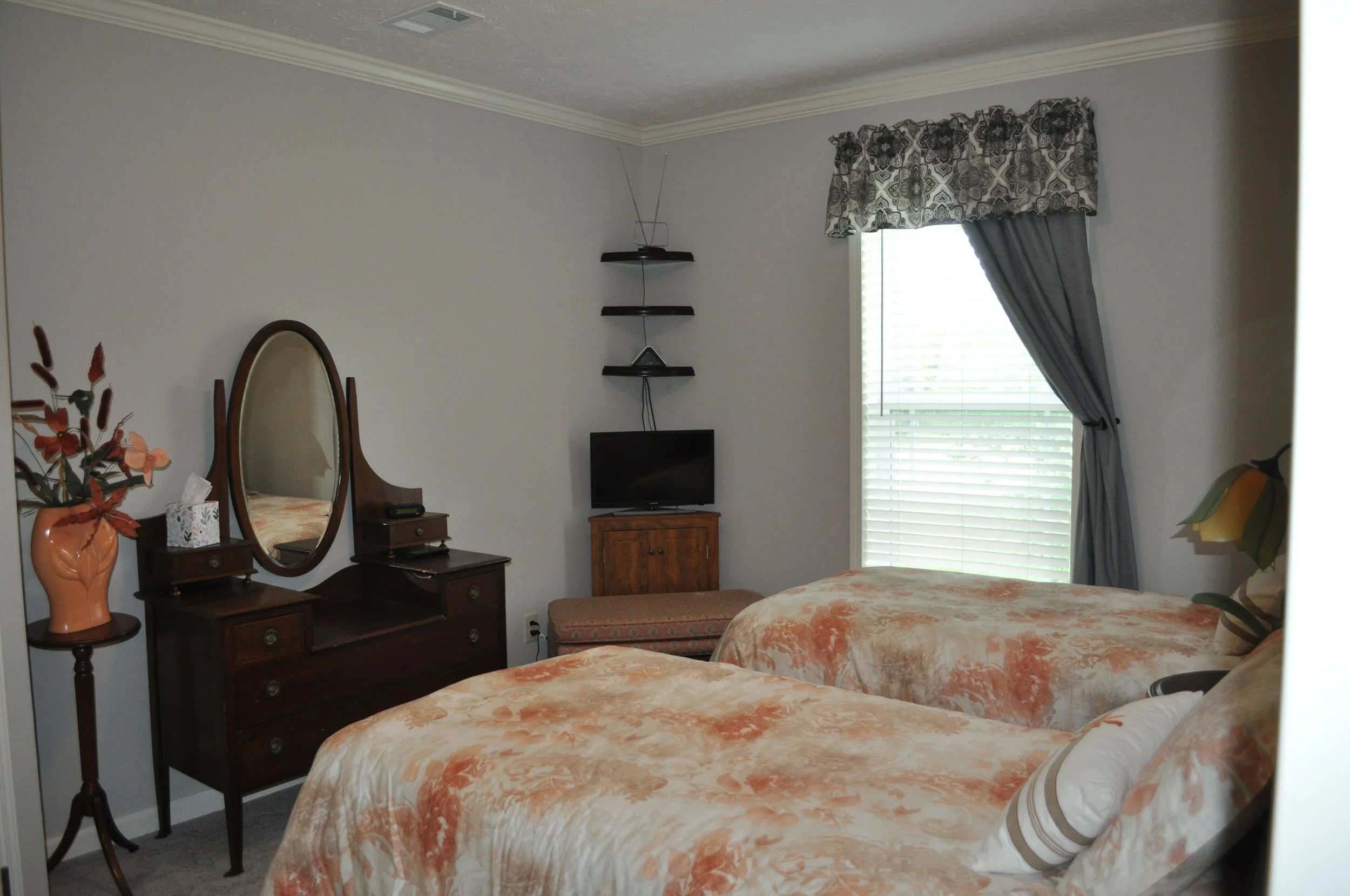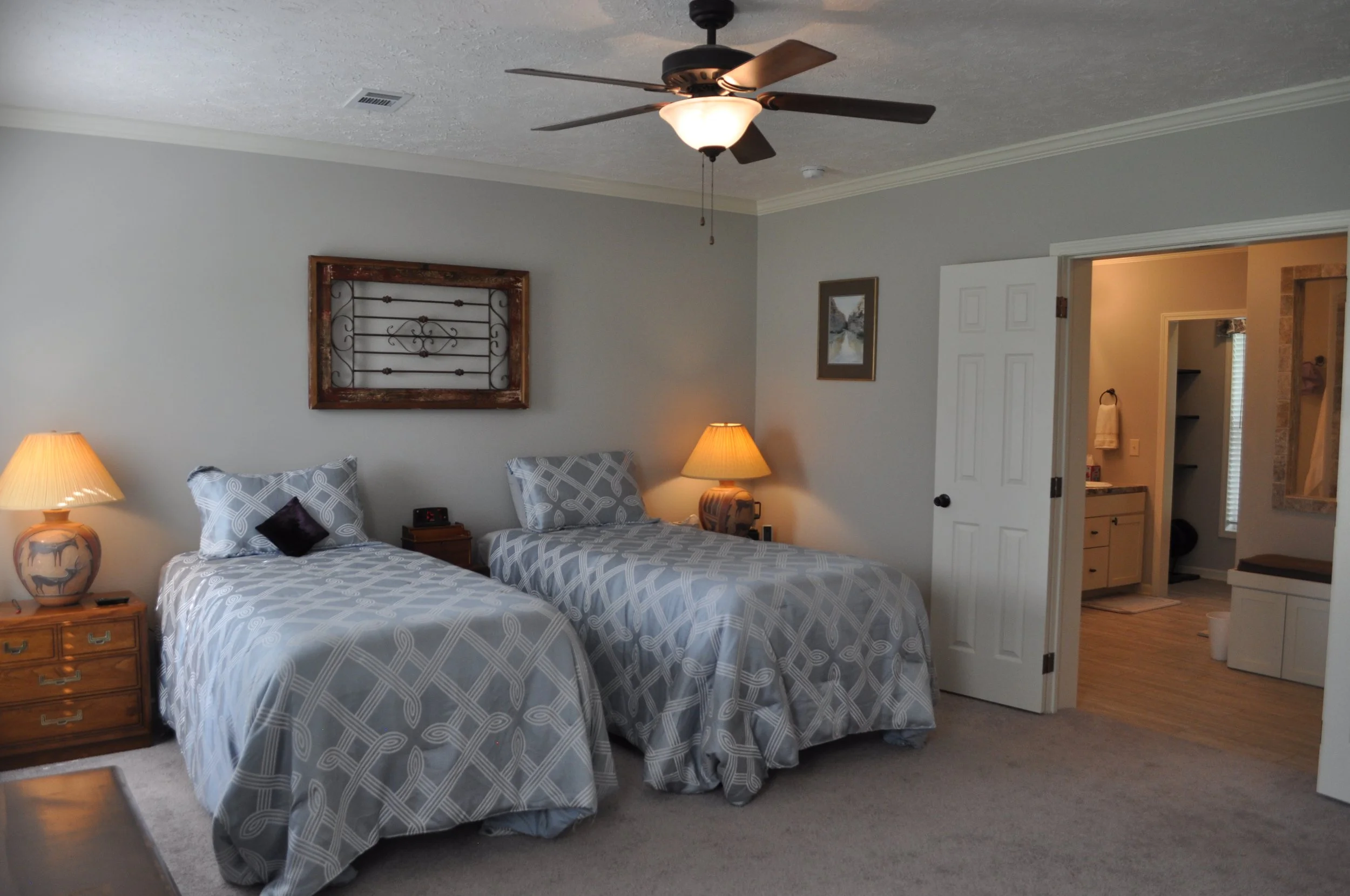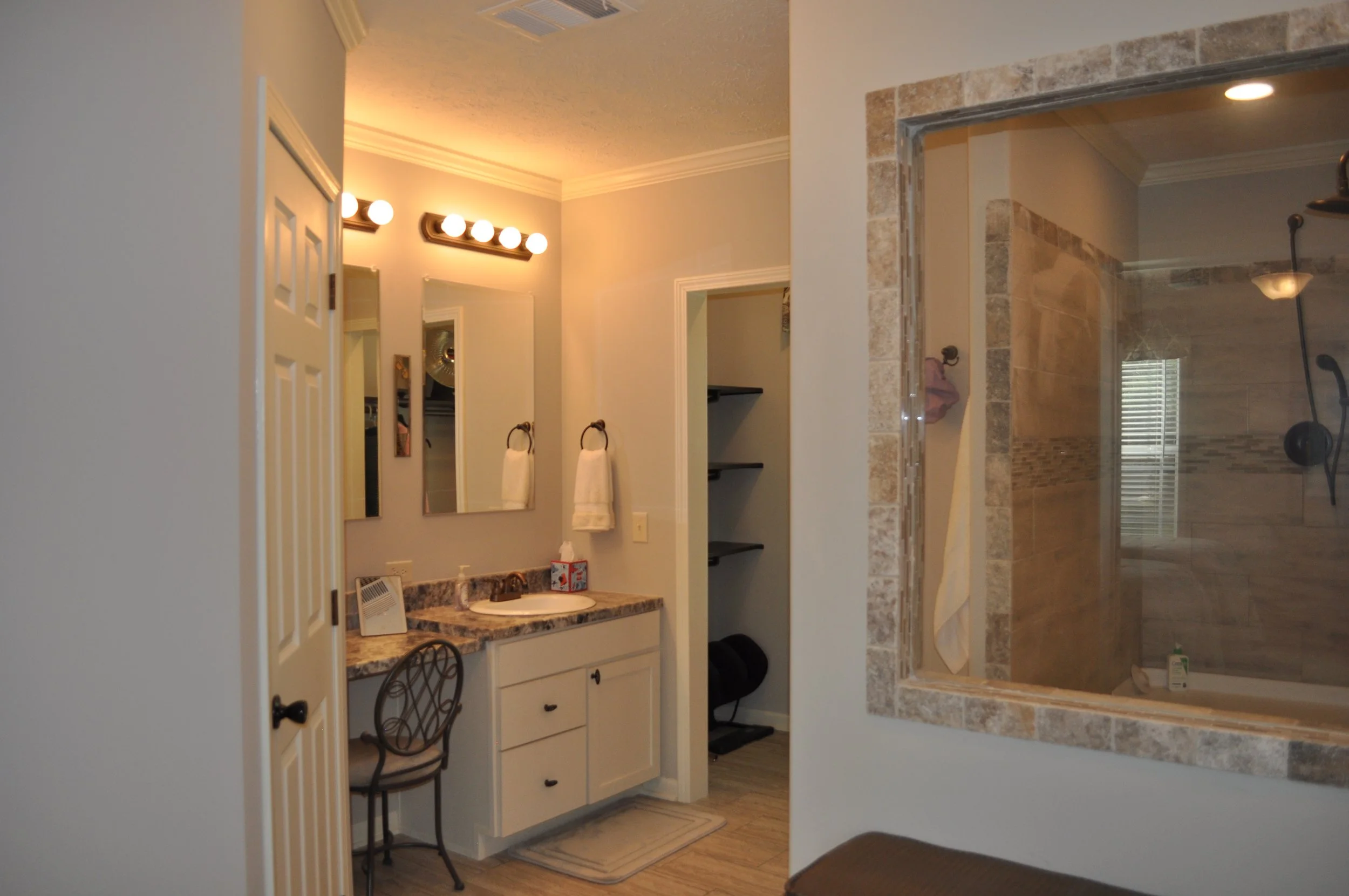 There are 2 comfortable guest rooms with nice size closets and 1 full bathroom. Look at this luxurious master bedroom with double doors leading to the master bathroom that has a HUGE center walk in shower, separate dressing areas with sinks, 2 walk in closets, separate toilet area and extra bonus dressing area.